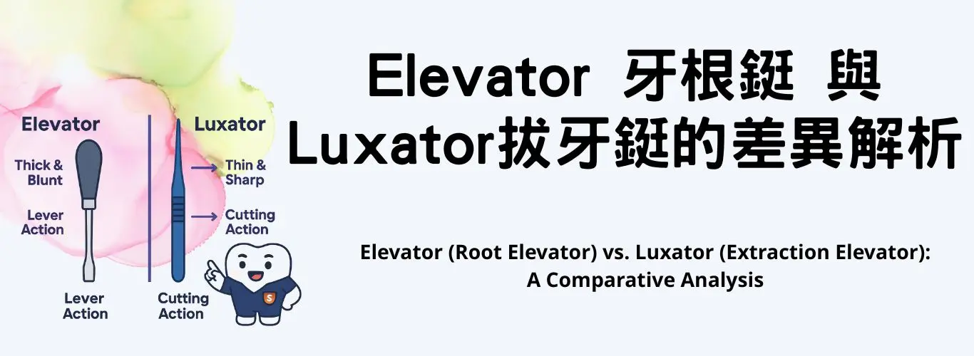在牙科拔牙過程中,Elevator 與 Luxator 雖外觀相近,但在設計、功能、操作方式與臨床應用上有明顯不同。以下為重點整理,協助臨床快速選擇合適器械、降低骨損傷、提升效率。