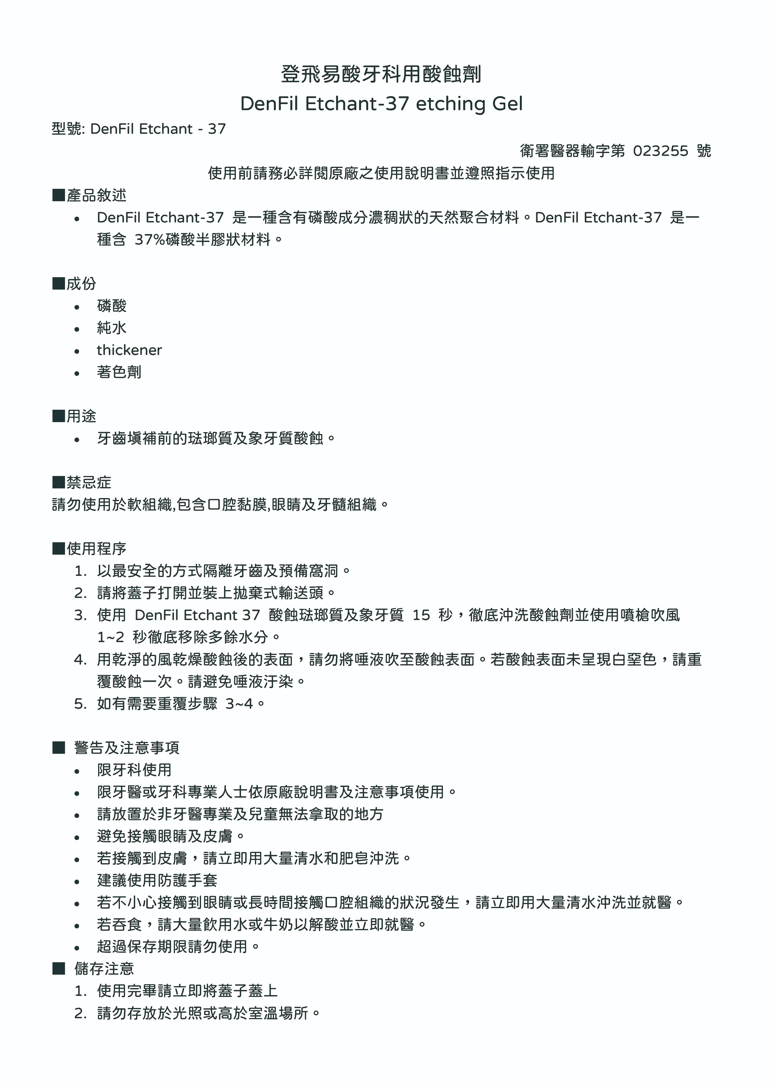 電子化說明書 -登飛易酸牙科用酸蝕劑