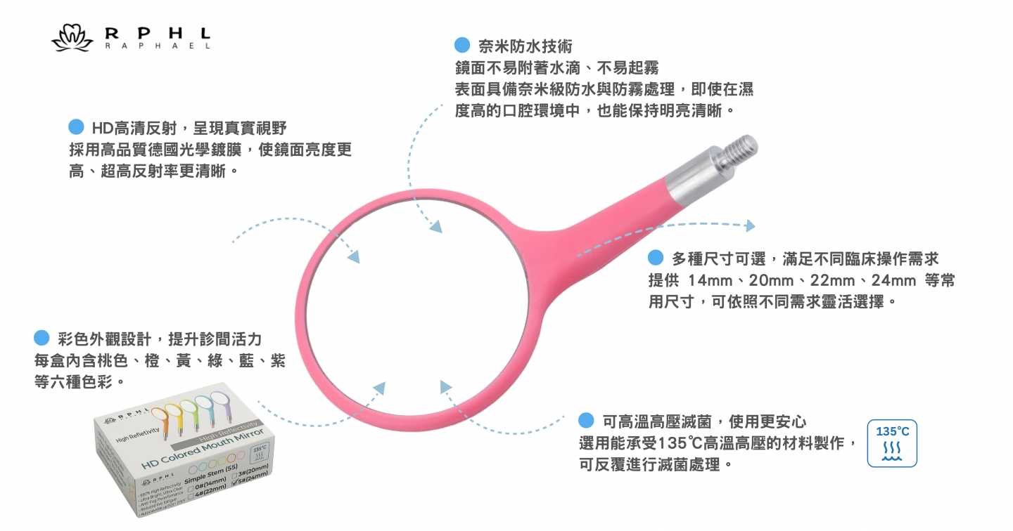 | RPHL-001D-H | RPHL 彩色口鏡柄【6支/最高耐135℃/SS螺紋/最高耐135℃】 | $1200 |