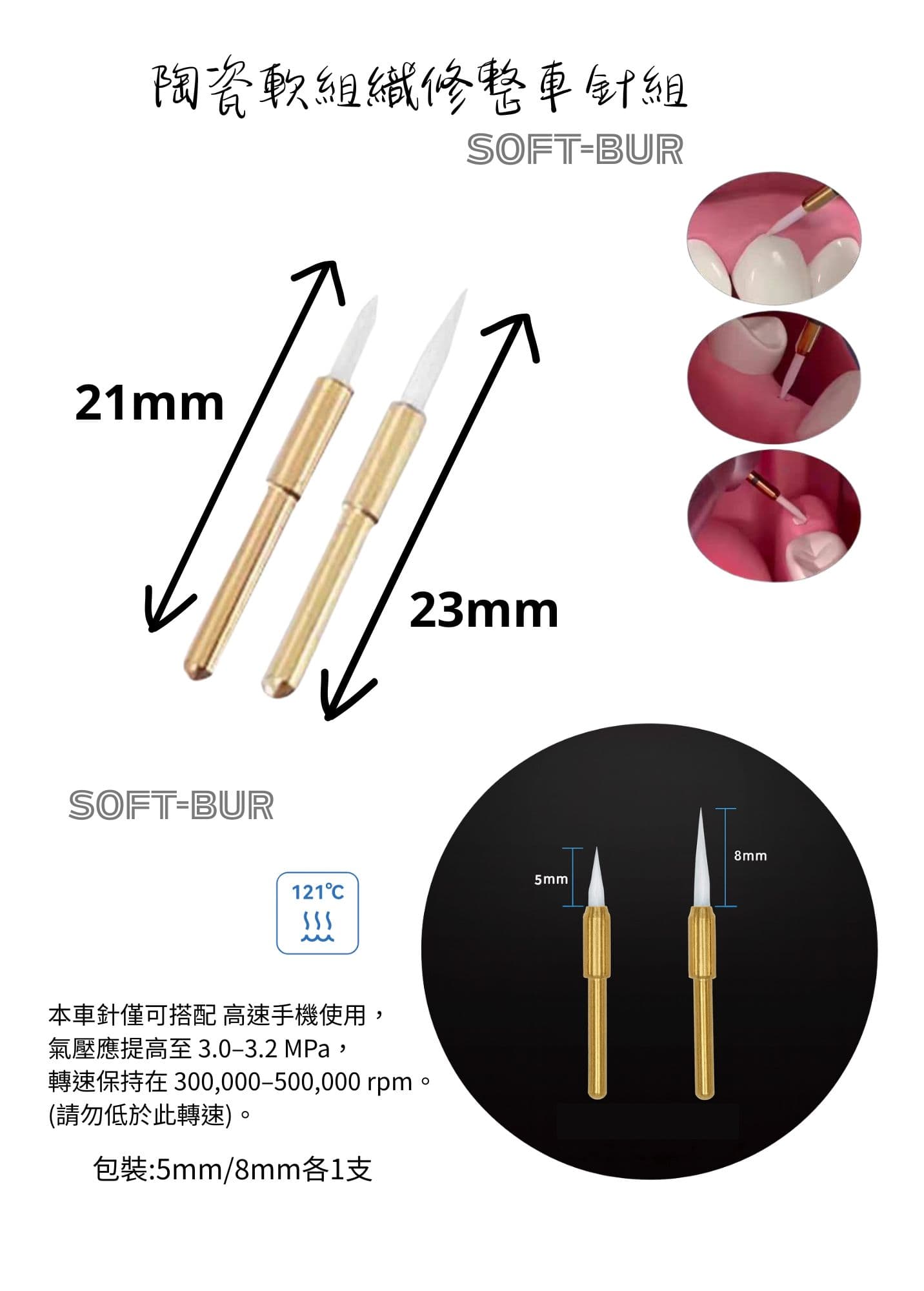 Soft Bur 陶瓷軟組織修整車針(2支組)