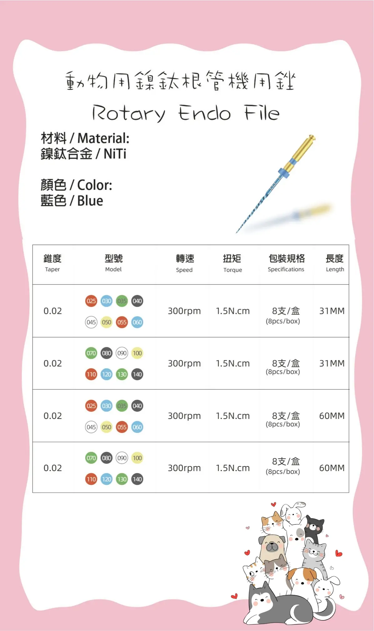 動物用鎳鈦根管機用銼 / Rotary Endo File