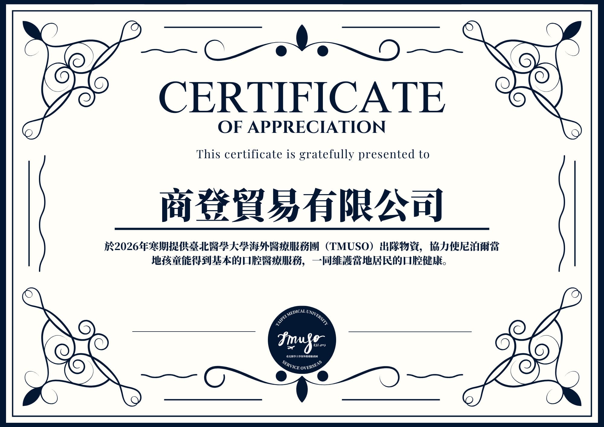 2026 年寒冬,商登貿易有限公司很榮幸能支持「臺北醫學大學海外醫療服務團 (TMUSO)」遠赴尼泊爾展開海外醫療援助。
